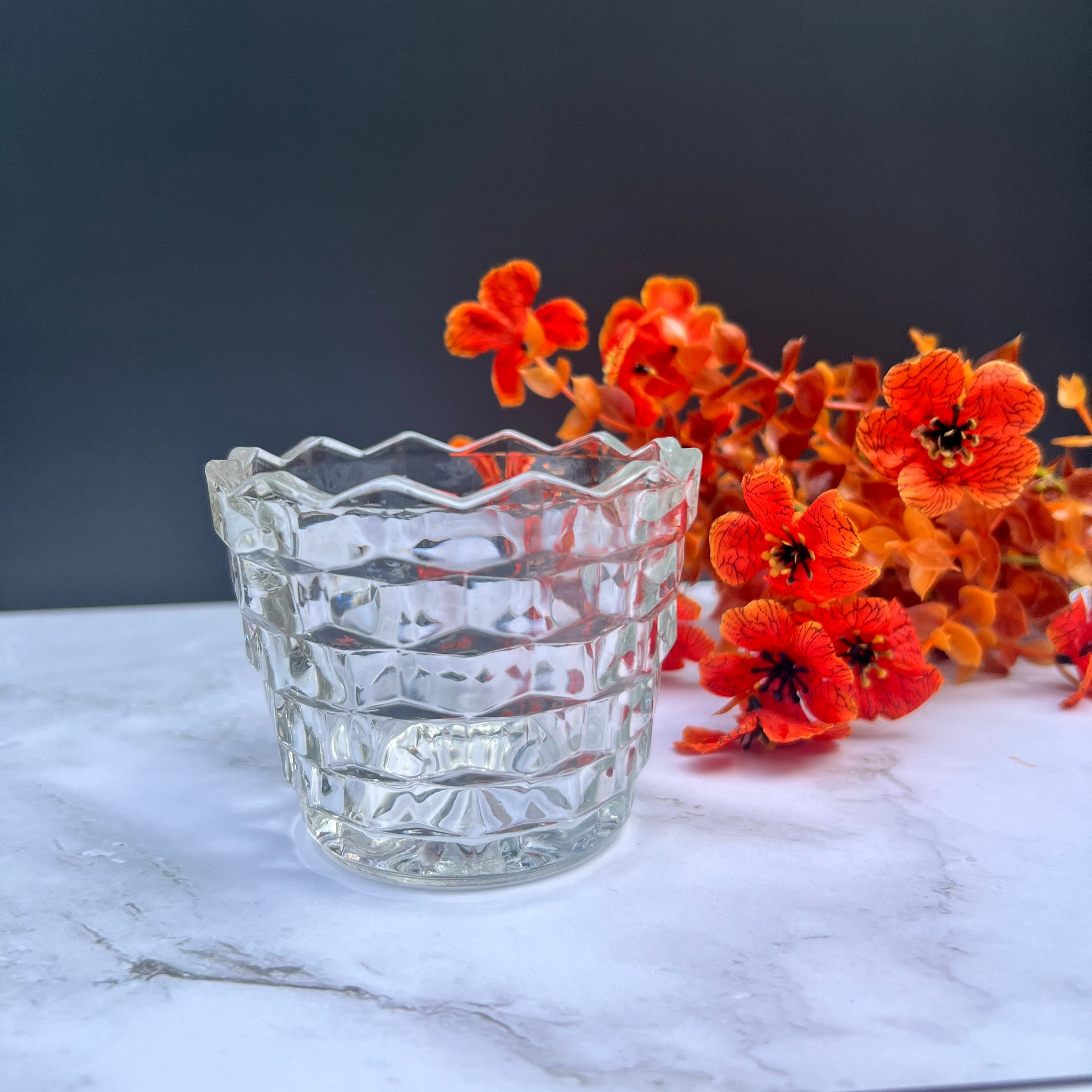 A petite vintage treasure with radiant charm. This American Clear Sugar Barrel/Candy Dish features classic pressed-glass detailing that sparkles softly in the light. Poured as a wickless candle for your candle lamp—or available with a traditional wick—it brings a touch of old-fashioned elegance to any corner of your home. A sweet, versatile Ever Again piece ready to shine in a brand-new way.